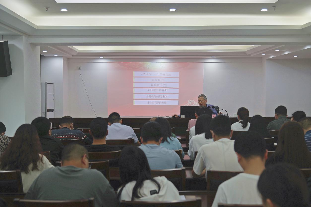 為做好企業(yè)普法宣傳工作,廣泛開(kāi)展法律進(jìn)企業(yè)法制宣傳教育活動(dòng),培養(yǎng)員工學(xué)法、懂法、用法法治思維,2022年5月25日下午,巴中發(fā)展控股集團(tuán)舉辦了法律培訓(xùn),特邀請(qǐng)巴中市律師協(xié)會(huì)會(huì)長(zhǎng)、四川砝鼎律師事務(wù)所主任朱曉光作專題培訓(xùn)。集團(tuán)總部員工,下屬企業(yè)風(fēng)控負(fù)責(zé)人、法務(wù)、業(yè)務(wù)工作人員共計(jì)50余人參加本次培訓(xùn)。培訓(xùn)會(huì)議指出,現(xiàn)今契約文化的重要性不言而喻,合同是保障企業(yè)權(quán)利的命脈,要推動(dòng)企業(yè)法律工作向管理型轉(zhuǎn)變,由事后救濟(jì)型向事前防范、事中控制型轉(zhuǎn)變,努力做好風(fēng)險(xiǎn)防控。